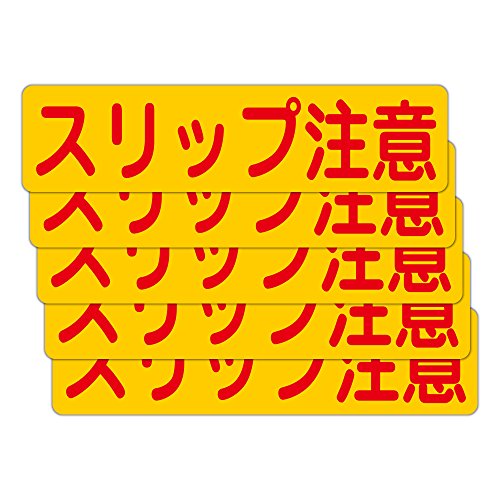 「注意・警告 スリップ注意」 床や路面に直接貼れる 路面表示ステッカー 300X75mm ヨコ型 5枚組