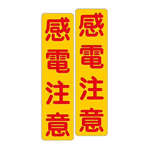 「注意・警告 感電注意」 床や路面に直接貼れる 路面表示ステッカー 75X300mm タテ型 2枚組