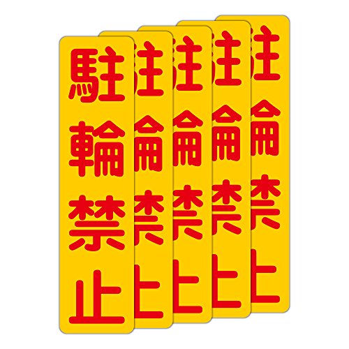 「注意・警告 駐輪禁止」 床や路面に直接貼れる 路面表示ステッカー 75X300mm タテ型 5枚組
