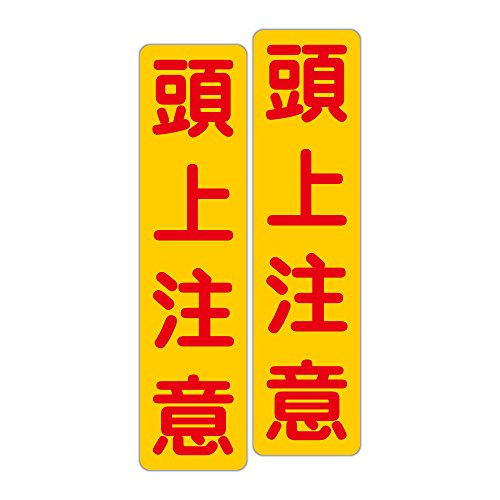 「注意・警告 頭上注意」 床や路面に直接貼れる 路面表示ステッカー 75X300mm タテ型 2枚組