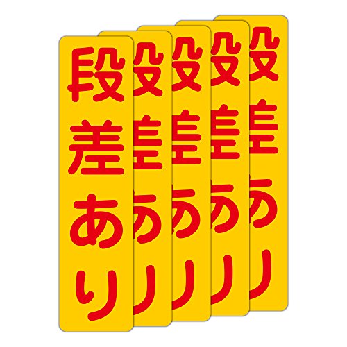 「注意・警告 段差あり」 床や路面に直接貼れる 路面表示ステッカー 75X300mm タテ型 5枚組