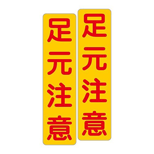 「注意・警告 足元注意」 床や路面に直接貼れる 路面表示ステッカー 75X300mm タテ型 2枚組