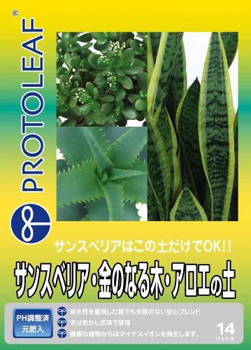 ●排水性を重視した配合。 ■理想的な物理性(保水性・保肥性・排水性)と化学性(肥料分・pH・EC)を実現した土。■初期生育を助ける栄養素入り。水分量を調整しやすいよう排水性の良い配合としました。排水性を重視したことにより、だれでも失敗のない安心ブレンドです。サンスベリアは水やりを極力控えめにすると良いという説もありますが、プロトリーフではサンスベリアは適度の水やりと追肥を与えることで成長力をアップさせることを提案します。