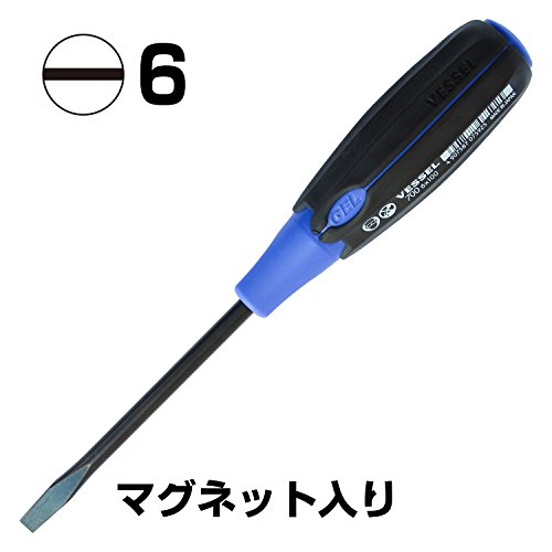 ●手のひらに合わせてグリップ形状が変化する新開発ゲル入りグリップです。手にフィットするため回しやすく滑りにくくなっています。●刃先:[[(-)]]6●軸長(mm):100 ●全長(mm):215 ●梱包数(本):6●全身焼入●クロムメッキ仕上げ●刃先:マグネット入り●ねじ締め作業。●軸:クロムバナジウム鋼