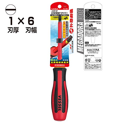 ベッセル(VESSEL)メガドラ 絶縁ドライバー -6×100 感電防止対策 VDE規格認証済 No.960