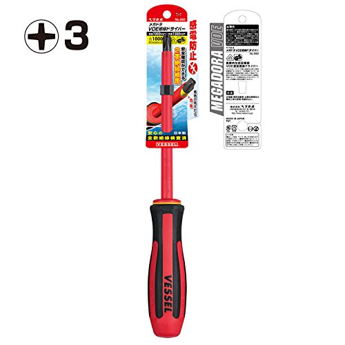 ベッセル(VESSEL)メガドラ 絶縁ドライバー +3×150 感電防止対策 VDE規格認証済 No.960