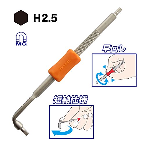 ●狭い箇所に適した短軸仕様です。●L型のコーナーをフラットにすることで極限の短軸曲げを実現しました。●フラット部分は使うとき指を添えると安定し、力が入れやすい形状です。●カラーで色分けしたソフトグリップ付きで刃先の形状・サイズが分かりやすく、しかもソフトな手当たりで作業時の持ちやすさをサポートします。●全長(mm):105●対辺(mm):2.5●原産国:日本●質量:27G