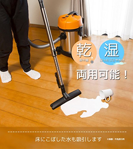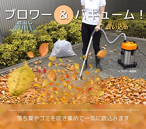 ●乾いたゴミはもちろん、湿ったゴミや液体もグングン吸引!ご家庭はもちろん庭先、駐車場など屋外でも使用できる頼もしい掃除機!●サビに強いステンレスなので砂やホコリ、水を吸い込んでも安心!●ブロワー機能がついているので広い範囲に散らばった落ち葉を吹き寄せてから一気に吸引!車内にたまったホコリも吹き出しor吸入します!●5mロングコード搭載でお庭、ガレージの自動車、はたまた店舗やオフィスなどでも活躍します。●サイズ:(約)W317×D330×H527mm / 約6kg コード長:約5m●電源:AC100V 50/60Hz、消費電力:1200W、集塵容量:10L、吸水容量:約8L、運転音:約77dB、吸引仕事率:約175W、風量:1.90?/min●セット内容:本体、ホース、伸縮パイプ、フロアノズル(付替えパーツ:標準/ブラシ)、隙間ノズル(ブラシ)、キャスター4個、取扱説明書(保証:1年)