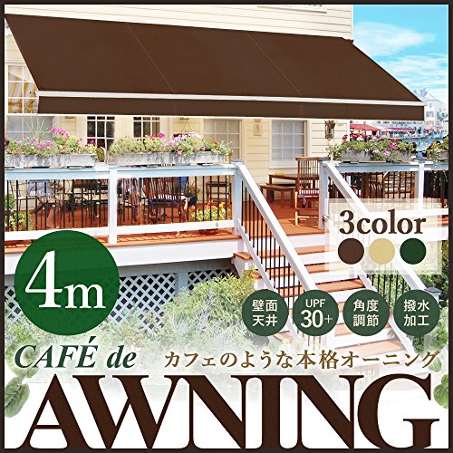 Sea the Stars オーニング テント 4m 伸縮 日よけ 雨よけ 撥水加工 角度調整 (ブラウン)