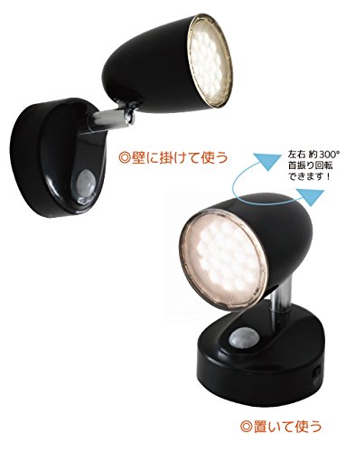 ●電池式のセンサーライト。コンセントを気にすることなく設置できます。●人が通るとセンサーが反応してLEDで照らします。夜間トイレに起きた時に通るだけで部屋や廊下を照らします●機能:検知方式:PIRセンサー(赤外線受動式)、電源:単4形アルカリ乾電池3本(別売り)、点灯時間:約20秒、センサー有効角度:約90度、センサー有効距離:水平設置時:約2m 垂直設置時:約5m、光源:1.2W LED×20球(60ルーメン)●付属品:取付ネジ×2、取付アンカー×2、取扱説明書(保証書)