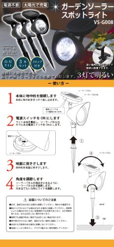 VERSOS ガーデンソーラースポットライト 3本セット(クリップ付き) ブラック VS-G008