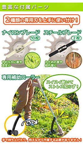 - 【付属品】 ・バッテリー ・車輪 ・ナイロン刃10枚 ・スチール刃2枚 ・充電器 ・取扱説明書/保証書