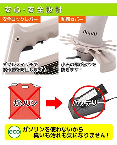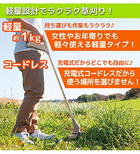 ◆安全フリープロテクター採用。草刈り時の危険をしっかりガード。 ◆コードレスなので場所を選びません。 ◆「ナイロン刃」花壇やフェンスなどの障害物のある場所でも安全。 ◆「スチール刃」硬い茎、枯れ草、太い茎はスチール刃でラクラクカット。 ◆グリップは握りやすく、スイッチは誤動作防止の安全ロックレバー付き。 ◆バッテリーを含めても約1kgと軽量で、女性の方も楽に操作。