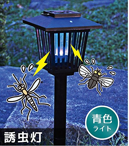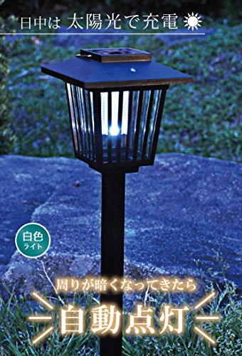 ●スイッチ切換えで電撃殺虫モードとガーデンライトが可能なソーラー式ライト。●電池不要なのでとっても経済的!昼間に太陽光で充電して辺りが暗くなってきたら自動点灯します。●どんな場所にも簡単設置!地面に埋め込むだけで簡単に設置ができ、電気配線もいりません。●吊り下げハンドル付きなので高い場所への設置も可能。玄関や軒下に吊るすこともできます。●電源:充電式ニッケル水素単三充電池 1.2V 600mAh、電圧/電流:2V/100mA 0.2W●光源:青色 LED2灯 白灯 LED1灯、点灯時間:殺虫モード/約3~5時間 ガーデンライトモード/約4~6時間(直射日光が8時間以上あたる場所に設置した場合)※目安●サイズ:(約)W150×D150×H570mm (杭部130mm) / 約370g ●※装飾用等の灯具です。外灯や門灯のような照明器具や防犯用にはご利用いただけません。※点灯時間は目安です。季節・天候・気温により異なります。●※完全防水ではございません。屋外に設置の際は、軒下などの多量の雨などの水がかからない場所でご使用ください。