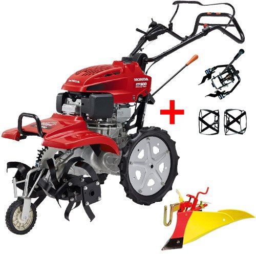 ホンダ 耕運機 サラダ FF500 ニューM型ヒッチ + イエロー培土器セット(尾輪なし)+スパイラルローター500セット