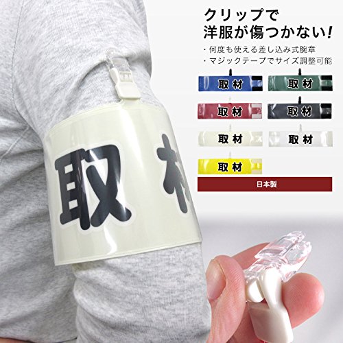 - 学校行事、各種イベント、地域の行事などでお使いいただける腕章です。 装着がクリップですので服に穴があく心配がございません。 【取材】の差し込みシート付きのセットなので到着後、スグにご使用出来ます。 この商品は到着までにお時間頂く場合がございます。ご了承下さい。