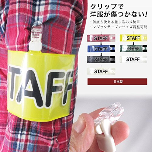 腕章 STAFF レギュラーサイズ ワンタッチクリップ マジックテープ付 差し込み式【セット商品:スタッフ】 (クリア)