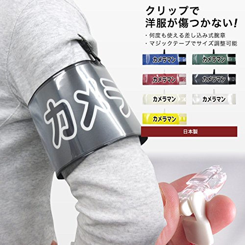 - イベントなどでお使いいただける腕章です。 装着がクリップですので服に穴があく心配がございません。 【カメラマン】の差し込みシート付きのセットなので到着後、スグにご使用出来ます。 この商品は到着までにお時間頂く場合がございます。ご了承下さい。