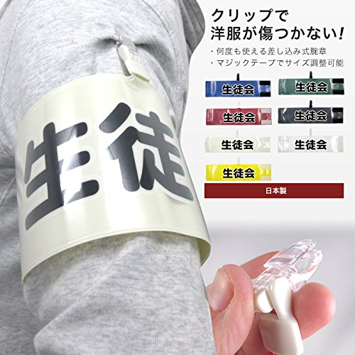 - 学校行事、社内、作業場などでお使いいただける腕章です。 装着がクリップですので服に穴があく心配がございません。 【生徒会】の差し込みシート付きのセットなので到着後、スグにご使用出来ます。 この商品は到着までにお時間頂く場合がございます。ご了承下さい。