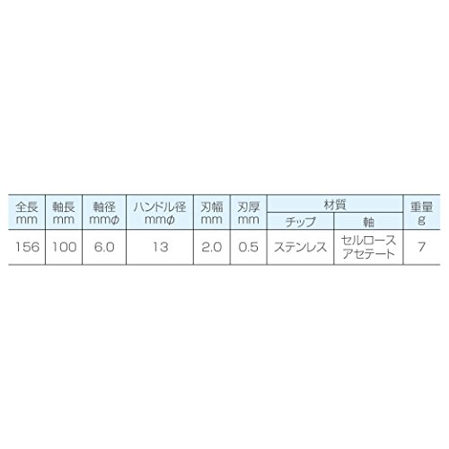 ・全長(mm):156 ・軸長(mm):100 ・RoHS対応先端サイズ(mm):-2.0×0.50 ・軸径(mmφ):6.0 ・ハンドル径(mmφ):13 ・質量:7g