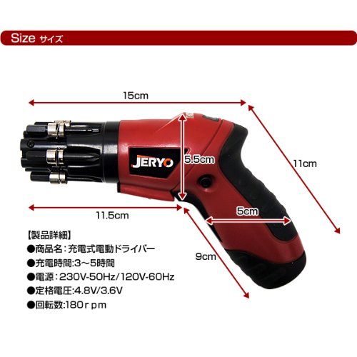 - [商品について]商品名:充電式電動ドライバー 充電時間:3~5時間 定格電圧:4.8V/3.6V 回転数:180rpm