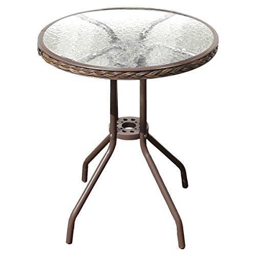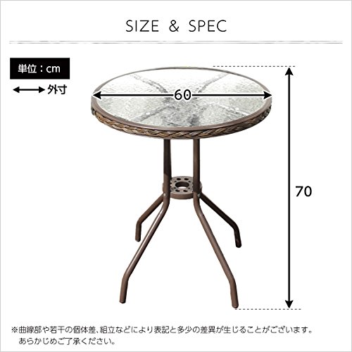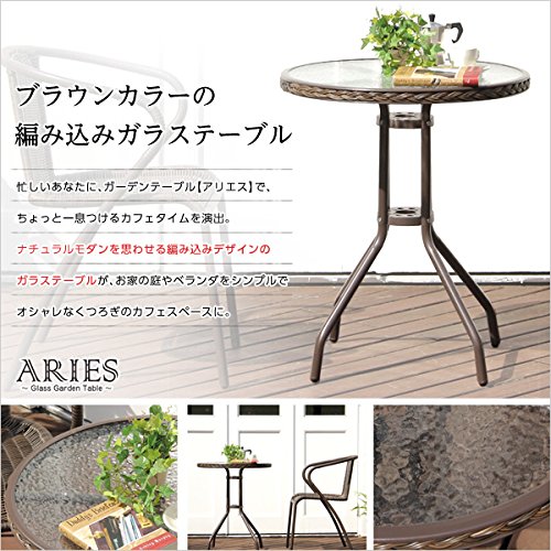 - オシャレな60cm幅ラウンドテーブル! フレームは雨や汚れに強いなスチール製! 編み込みフレームと磨りガラスがお洒落なカフェスペースを演出! カラーはどんな場所にも馴染みやすいブラウンでのお届けです!
