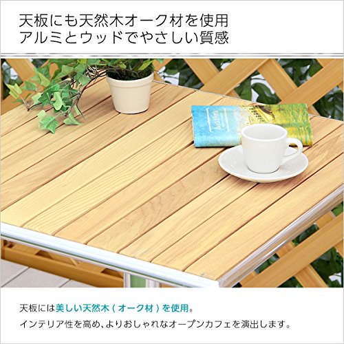 - 人気の天然木(オーク材)とアルミフレームの組み合せでおしゃれ感アップ! 脚部はサビに強く、お手入れが簡単なアルミ素材! 床やウッドテラスに優しいアジャスター付き!