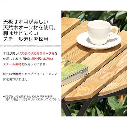- 天然木オーク材を使用したテーブル! 雨や汚れに強いスチール素材の脚部がとってもオシャレ! 場所を取らず便利な折りたたみ式! すぐに使用できる完成品でのお届けです!