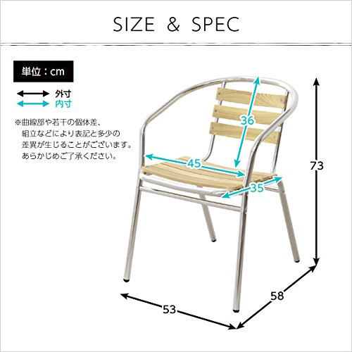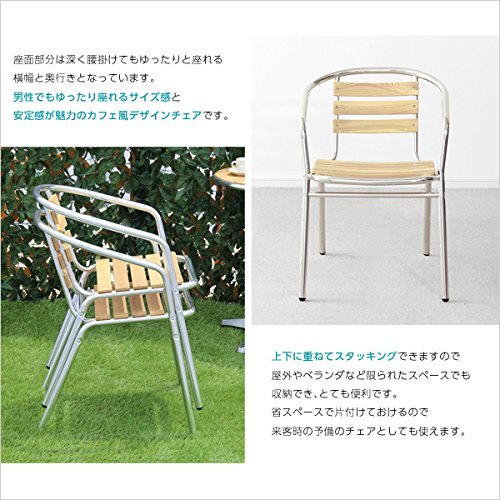 - 人気の天然木(オーク材)とアルミフレームの組み合せでおしゃれ感アップ! 脚部はサビに強く、お手入れが簡単なアルミ素材! 座面は深く腰掛けてもゆったりと座れるサイズ! スタッキング可能で収納にも便利!