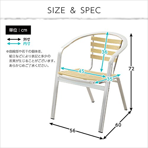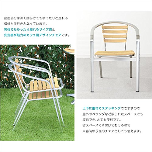 - 人気の天然木(オーク材)とアルミフレームの組み合せでおしゃれ感アップ! 脚部はサビに強く、お手入れが簡単なアルミ素材! 座面は深く腰掛けてもゆったりと座れるサイズ スタッキング可能で収納にも便利!