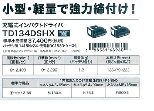 マキタ 充電式インパクトドライバ (バッテリー・充電器・ケース付) TD134DSHX