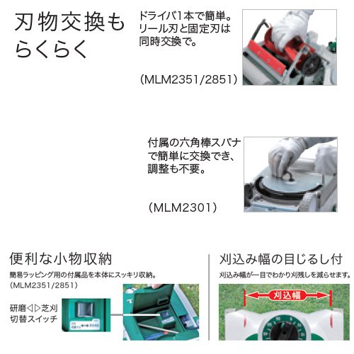 マキタ 芝刈機 MLM2851パワフル:650W 刈込み幅:280mm リール式 芝刈り機