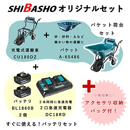 - 【アクセサリ収納バッグ付!】マキタの充電式運搬車CU180DZにバケットと、即使える!バッテリ・充電器を併せ、アクセサリ収納バッグが付いたSHIBASHOオリジナルセットです!