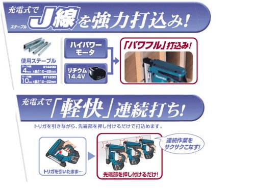 マキタ 充電式タッカ (本体のみ/バッテリー・充電器別売) 14.4V 10mm ST120DZK