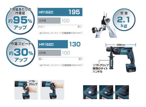 マキタ 充電式ハンマドリル 14.4V 3.0Ah 16mm 青 バッテリー2個付き HR162DRFX