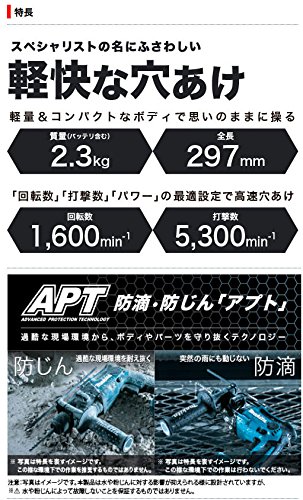 - 穴あけ能力(mm):コンクリート16、鉄鋼13、木工24、コアビット35、ダイヤモンドコアビット32