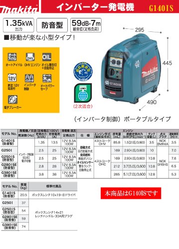 インバーター発電機 1.35kVA 周波数切替・防音型 G140IS
