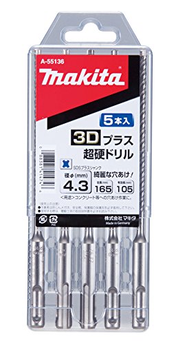 マキタ 3Dプラス超硬ドリル(SDSプラスシャンク) 径4.3mm 全長165mm 5本入 A-55136 (金属・金工)