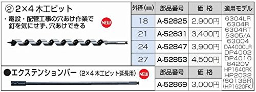 マキタ:エクステンションバー(2×4 木工ビット延長用) <A-52869> 型式:A-52869