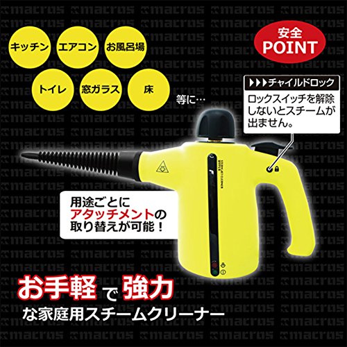 ●スチームジェットクリーナー ハイパー●≪特長≫●お手軽で強力なスチームジェットクリーナー 延長ノズル付でまるで掃除機のような感覚でクリーナーがかけられる!●≪仕様≫●寸法:約W30×D12×H21.5cm(本体のみ) コード長 : 約2m●重量:約1.1kg(本体のみ)●材質:PP アルミ ナイロン●電源方式:交流式●定格電圧:100V●定格周波数:50/60Hz●定格消費電力:1000W●圧力:約3Bar●スチーム温度:約90℃●温度ヒューズ:192℃●使用時容量:約250ml●加熱方式:ボイラー式●連続使用時間:約7?10分