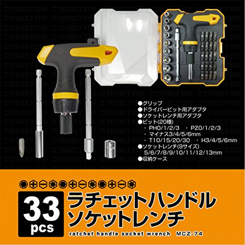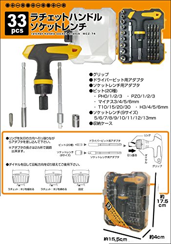 豊富なソケット 33種! ラチェット ハンドル ソケット レンチ ドライバー 工具 セット (専用 ケース 付き) MCZ-74