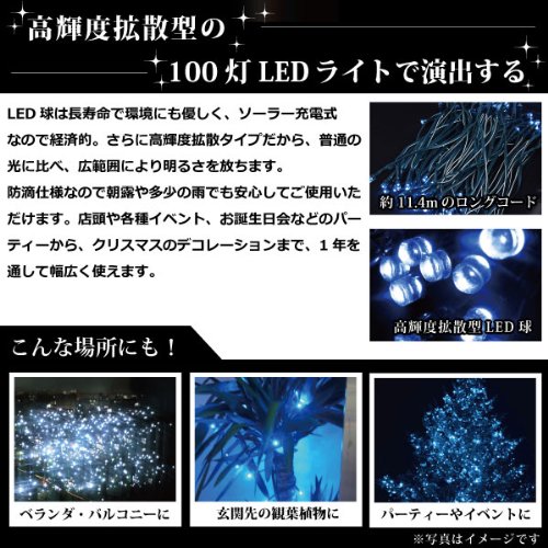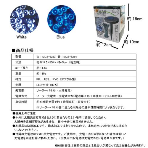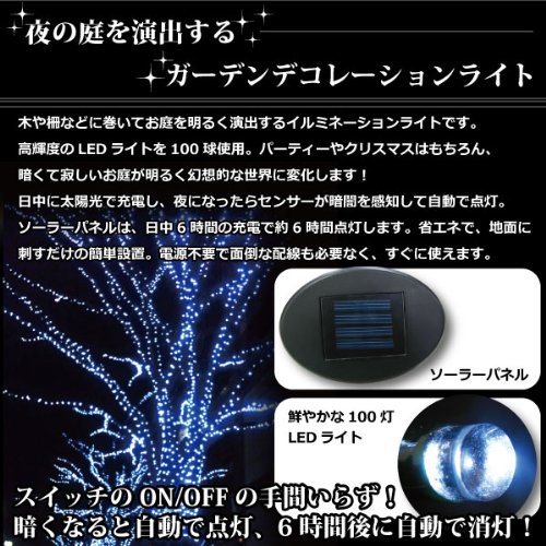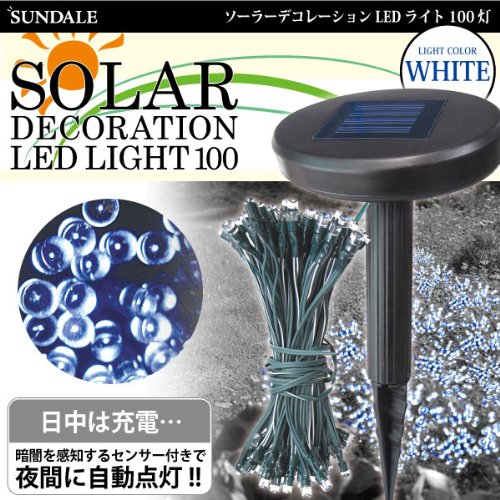 【太陽光充電式】 SUNDALE ソーラー デコレーション LED ライト 100灯 ホワイト MCZ-5263 <38588>