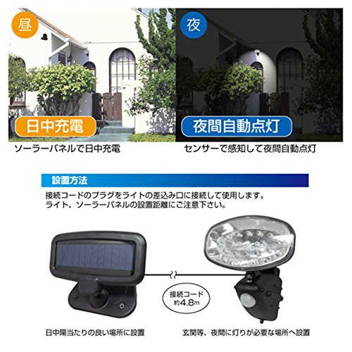 防滴 センサー ライト 15灯 ソーラー充電式 (ソーラー別設置可能) MEL-29