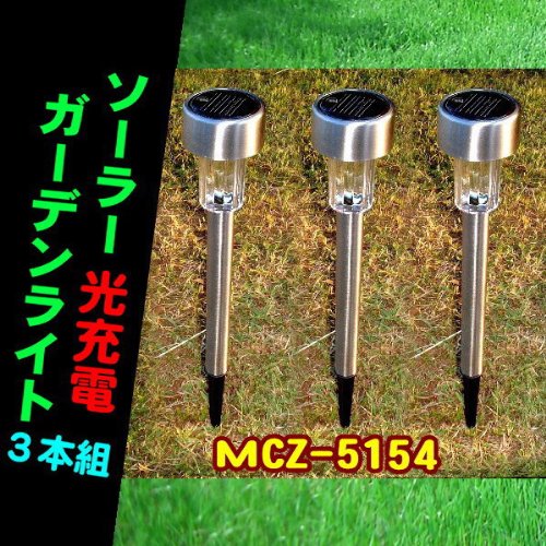 3本組光充電 ステンレス ソーラー ガーデン ライト 街灯 MCZ-5154