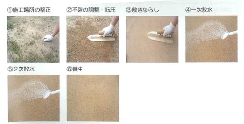 - 自然土を主原料にした環境と人に優しい真砂土舗装材です