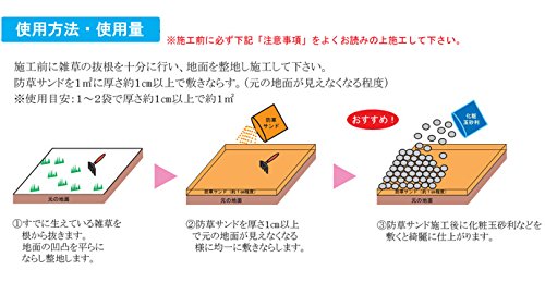 この防草サンドは、固まらないタイプですので面倒な施工など必要ないのでお手軽に失敗も有りません。