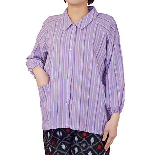 日本製の農作業ブラウス。素材は先染めの空羽織りに柔らかく、肌触りが良い揚柳加工を施しています。清涼感のある着心地で洗い縮みが殆どありません。