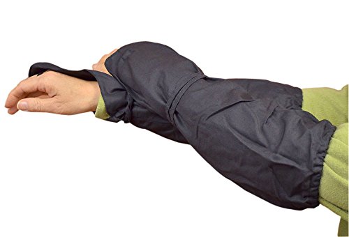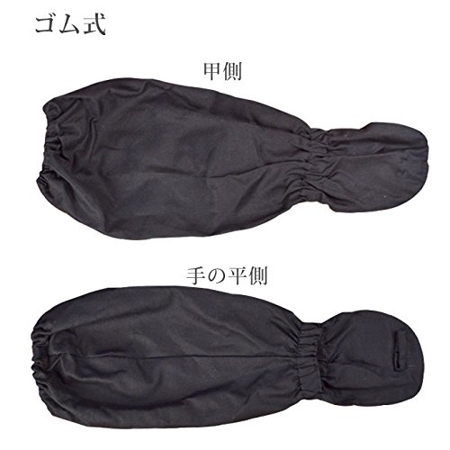 園芸、農作業用向けの日本製、黒腕カバー甲付き。洗いに強いT/C素材です。実績のある定番商品のゴム式となかなか見かける事の無いひも付きとがあります。
