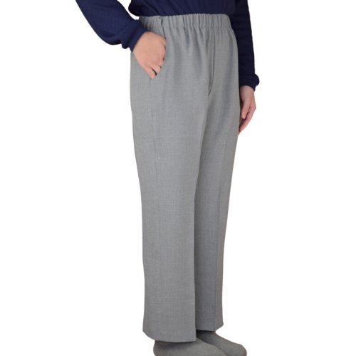 素材がポリエステル95% ポリウレタン5%なので水に濡れても乾きが非常に早いスラックスです。ウエストは総ゴムになっており、ゴムの入替も可能です。