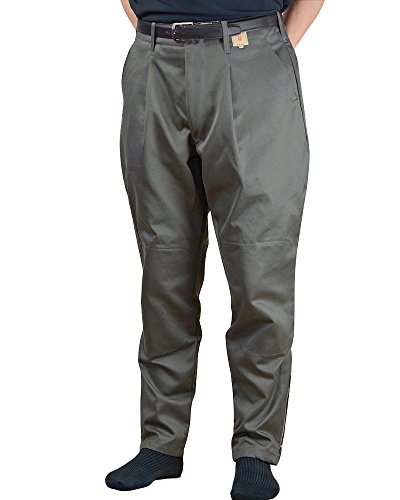 動きやすく、しっかり感のある日本製メンズズボン。股上が深くウエストにはタックがあります。